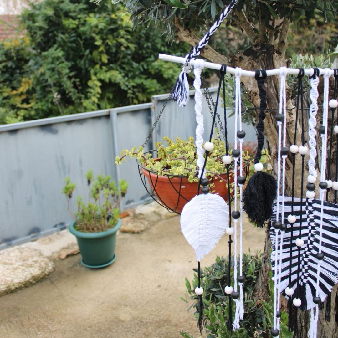 Materiais: Algodão, madeira, fio de algodão preto e branco