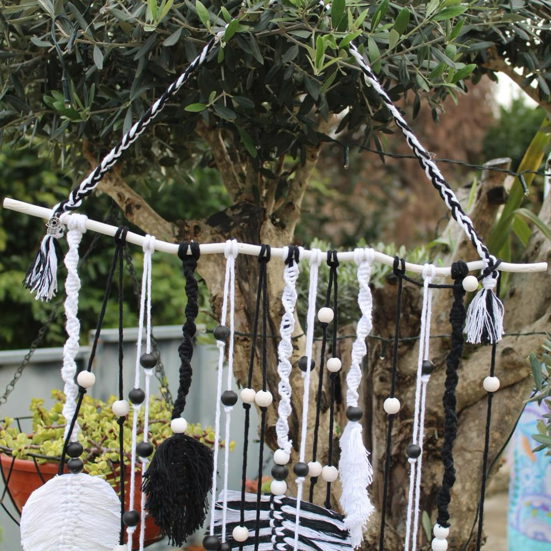 Moderno e arrojado, este caça-sonhos destaca-se com penas em preto e branco e um padrão gráfico tribal. Perfeito para quem procura algo diferente e estiloso para complementar uma decoração contemporânea ou eclética.
